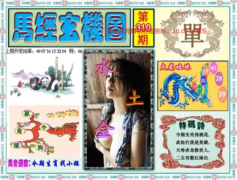 | 310期:七尾中特╠0123679╣开:虎16准 |